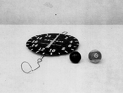 DESCRIPTION: Light and heavy balls are weighed using the spring scale. When they are dropped simultaneously from a height of about ten feet, they accelerate downward at the same rate (the acceleration of gravity) and reach the floor at the same time. A wooden board acts as a sound board to amplify the sound when they reach the floor.