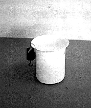 EQUIPMENT: Teflon beaker with 50 gram mass attached to the bottom by a rubber band, as photographed.