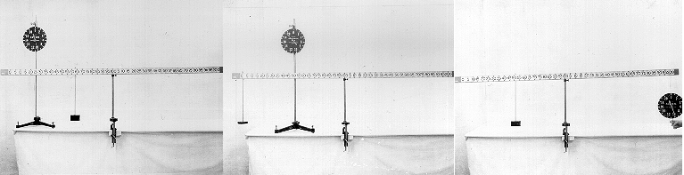 EQUIPMENT: Two-meter demonstration scale, 20 Newton self-weighing spring scale, 20 Newton normal spring scale, mass hanger with three 1 kg masses, string loop.