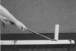 EQUIPMENT: Two 2"x4" boards nailed together, crowbar, clamps to hold wood steady as shown in photograph.