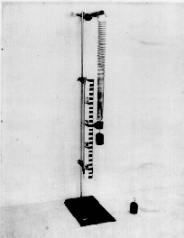 EQUIPMENT: Brass spring on scale with two 200 g weights, as photographed.