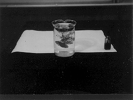 DESCRIPTION: A drop of food coloring is placed gently into a beaker of water. In a few minutes the food coloring will diffuse through the entire beaker of water. It might be argued that residual currents in the water account for much of this " diffusion." Maybe so, but it gets the point across even if you mention this.