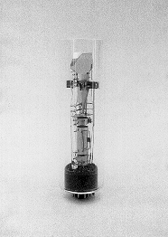 DESCRIPTION: Removing the outer glass shell from a CRT allows students to see the important internal components of the tube, including the geometry of the deflection plates. Pass it around the class. The core of the CRT has been mounted in a c lear plastic tube to prevent damage to the CRT and to viewers' hands.