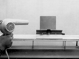 DESCRIPTION: A sail is attached as shown to an air track glider. Wind from a fan blows the sailboat in the direction from which the wind is coming if the angle of the wind and the sail are correct.