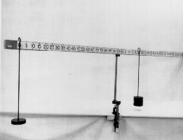 DESCRIPTION: Weights are hung along the two-meter scale to balance torques about the center of the scale.
