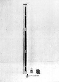 EQUIPMENT: Pile driver shaft, cylindrical iron weight, wood block with nail and hammer.