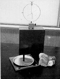 EQUIPMENT: Electrophorus plastic plate, aluminum plate with handle, fur, and electroscope.