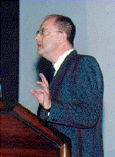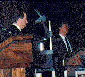 Bob Nemiroff presents flowers to debate participants